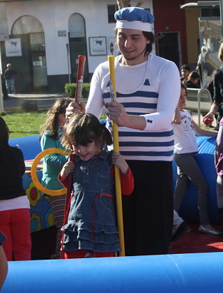 Taller de circo. Espectáculo circense totalmente interactivo, donde los pequeños se convertirán por momentos en unos auténticos malabaristas. Cuatro divertidos payasos enseñarán a manejar diábolos, a hacer equilibrios con mazas o pelotas, mantenerse en pie con los zancos, e incluso girar los platos chinos o mantener en el aire los bastones mágicos. Todo esto en un espacio circular.