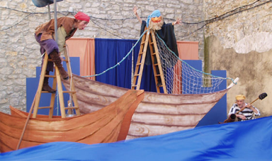 El Pirata Barba. Muñecos y títeres comparten escenario con los actores en una obra para público infantil y familiar en la que el Pirata Barba, refugiado en las islas Columbretes, y su gran enemigo el señor Mirabet se dan cuentan de lo inútil de la lucha después de tormentas, naufragios y mil batallas en las que participa el público y lo importante que es saber convivir.